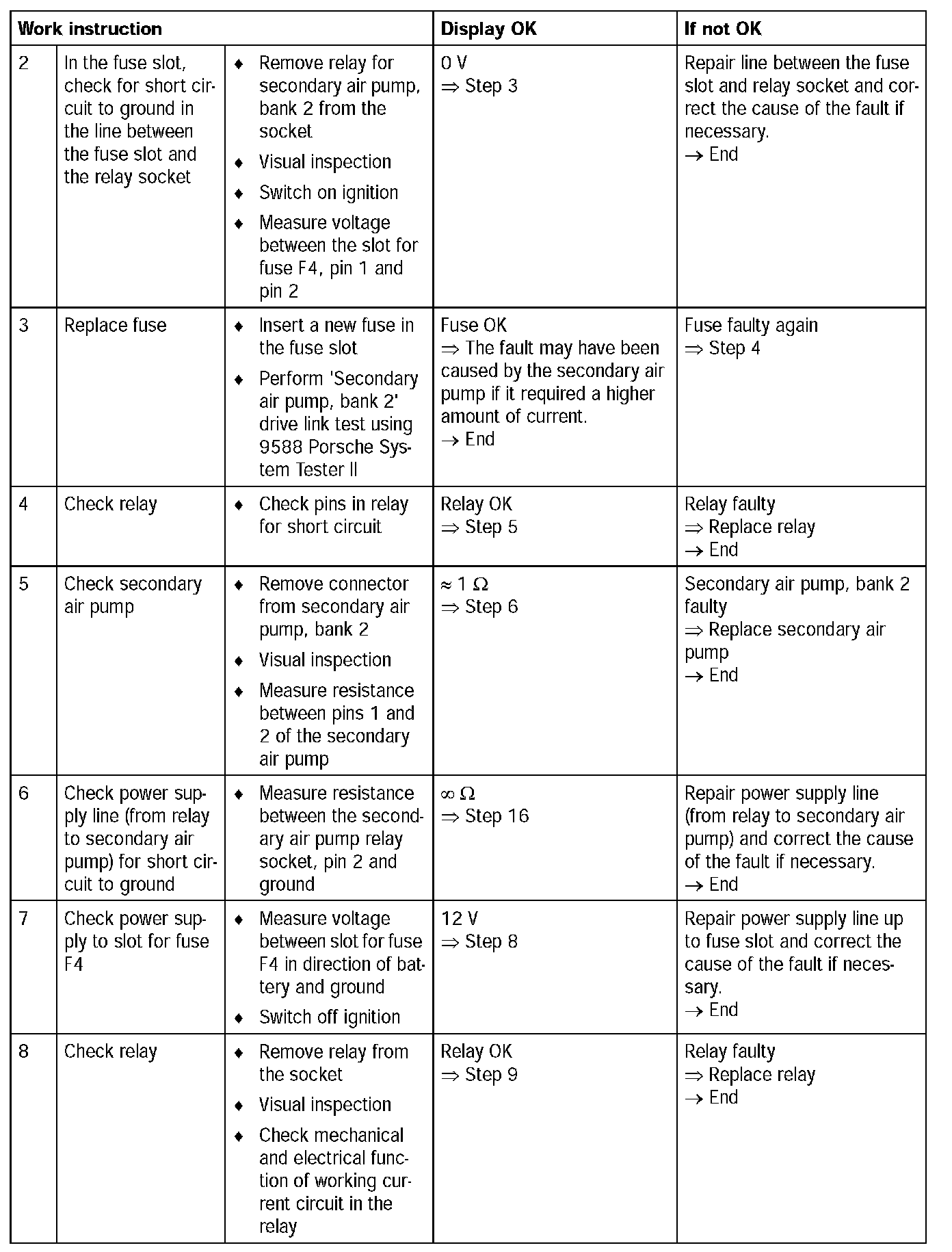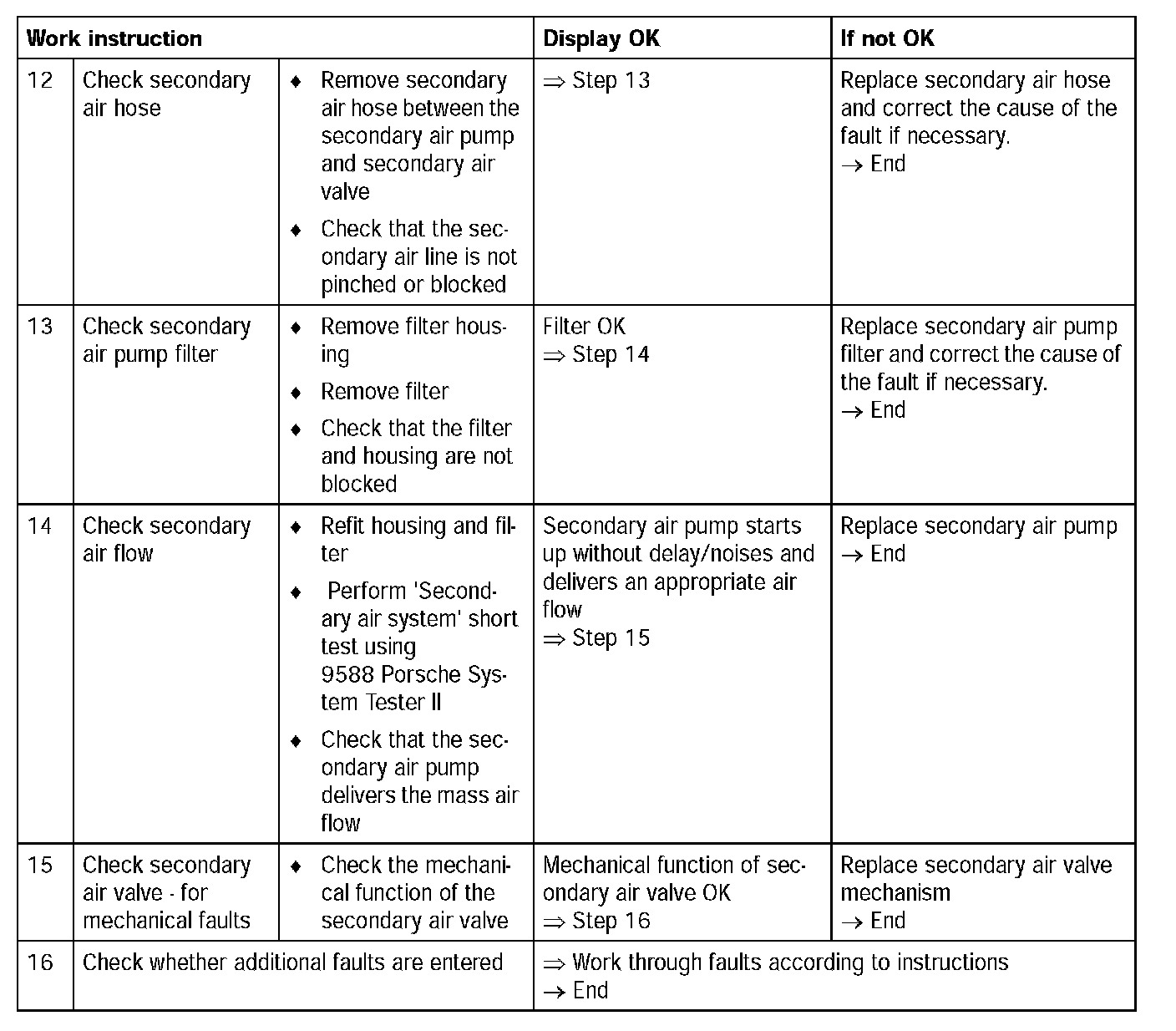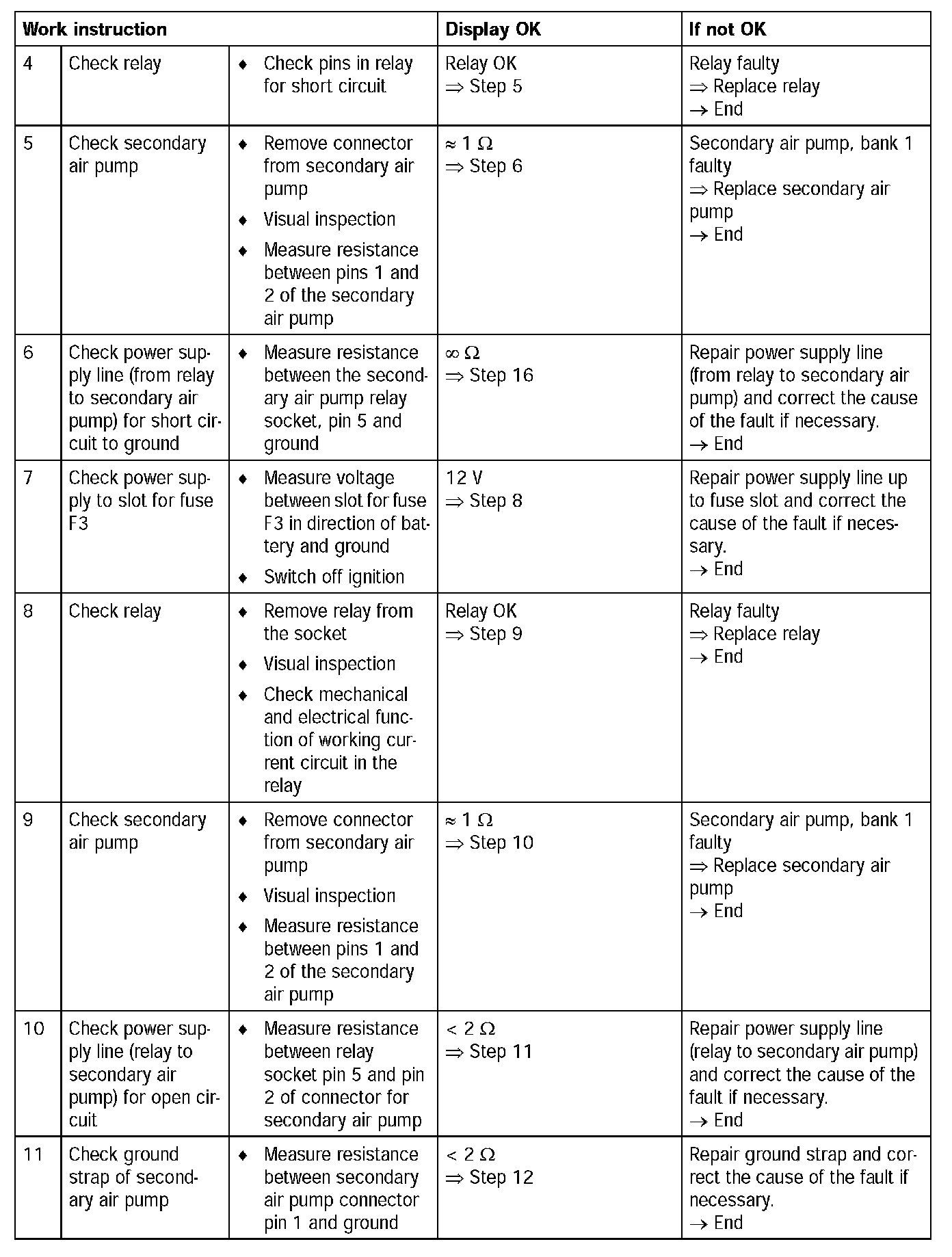- No faults in driver for secondary air pump relay