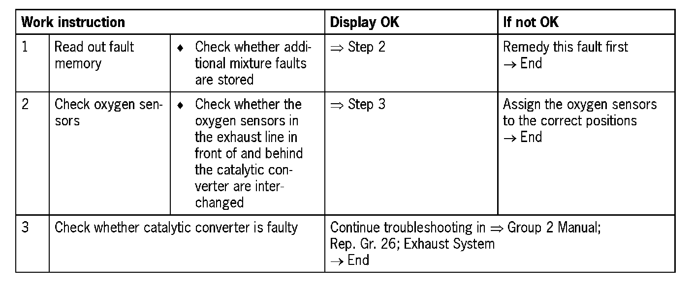 - The diagnosis function compares the actual amplitudes of the rear oxygen sensor with the amplitudes of a computed model. These amplitudes allow conclusions to be drawn about the ability of the catalytic converter to store oxygen.