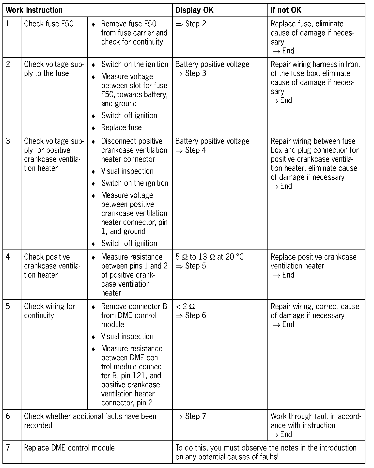 - The wiring diagnosis proceeds in the DME control module even if the positive crankcase ventilation heater is switched off (i.e. at an external air temperature above 3 °C).