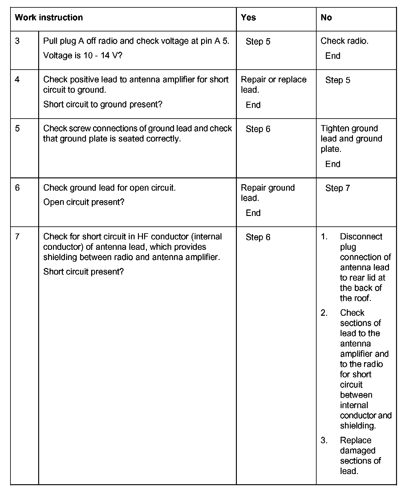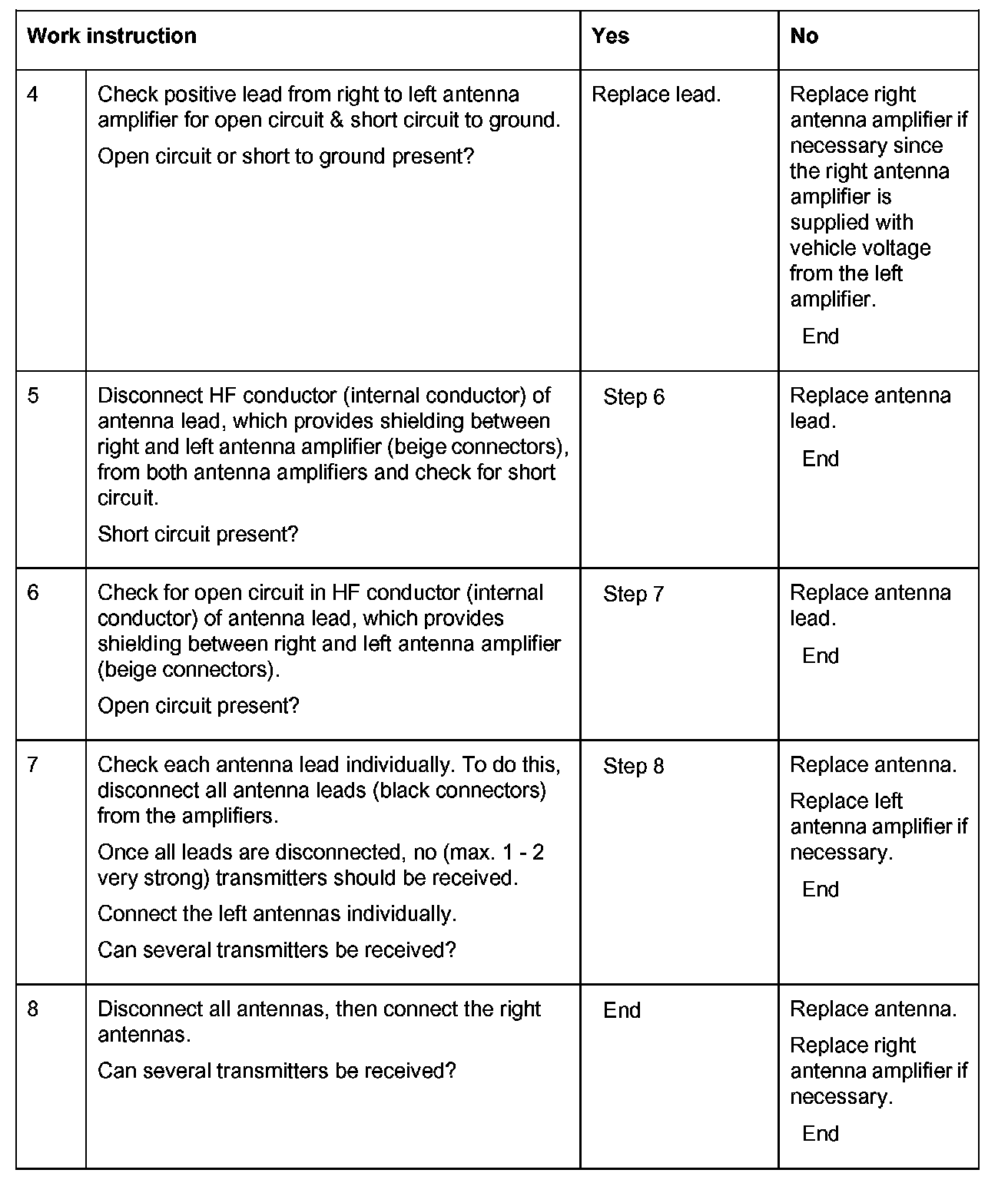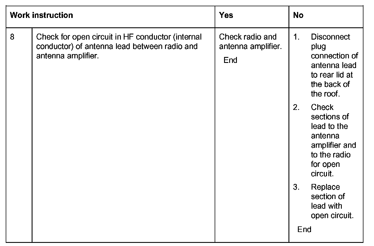 b. Check that antenna leads are not crushed or severely kinked. Replace damaged antenna lead and corresponding wiring harness if necessary.