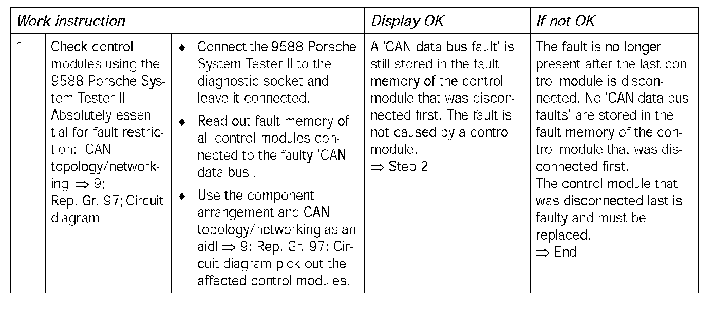 Read out the fault memory in the gateway and localise the error via the memorised error using the CAN topology. --> 9; Rep. Gr. 97; Circuit diagram