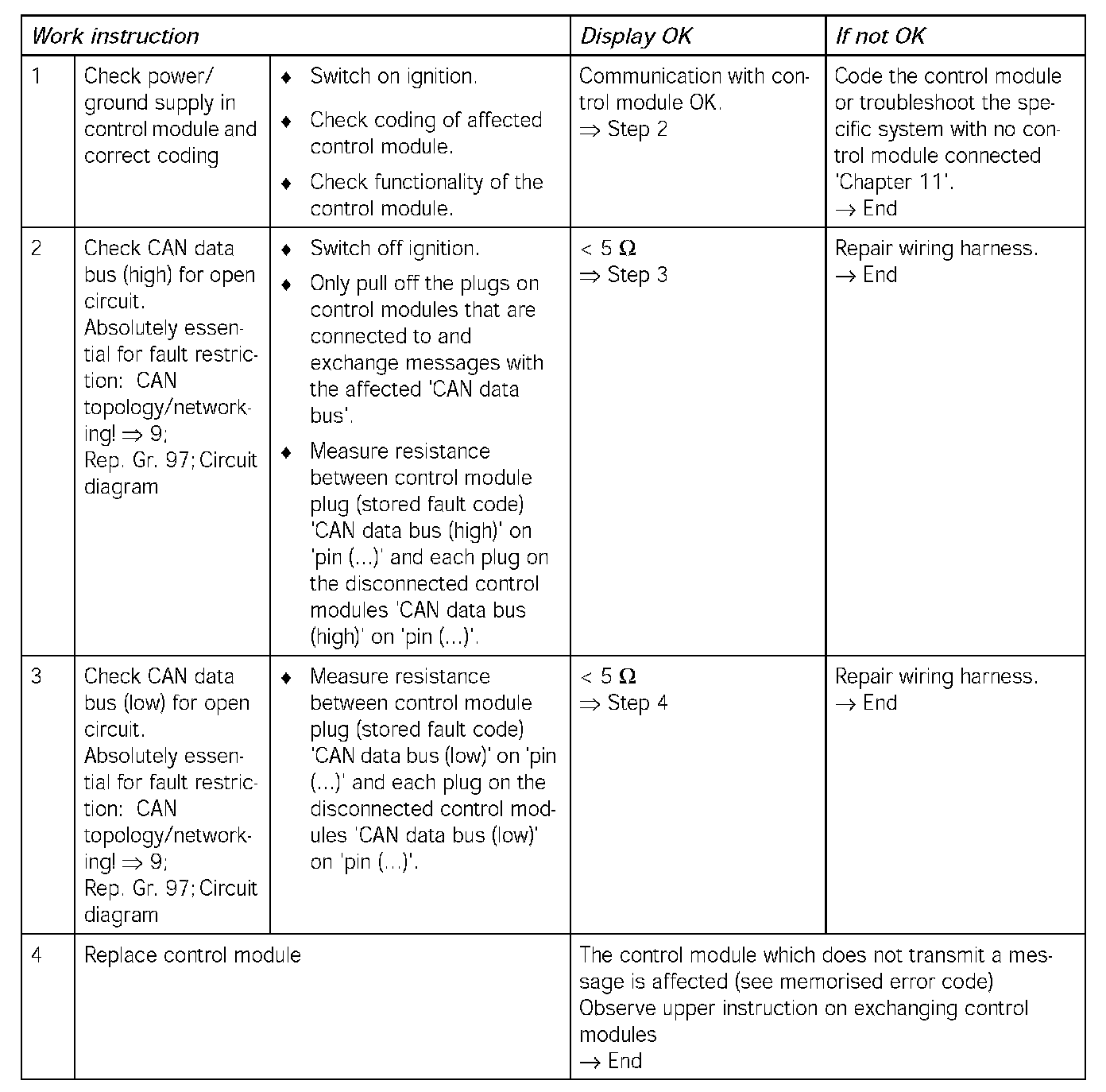 Checking instructions/CAN data busDiagnostic conditions