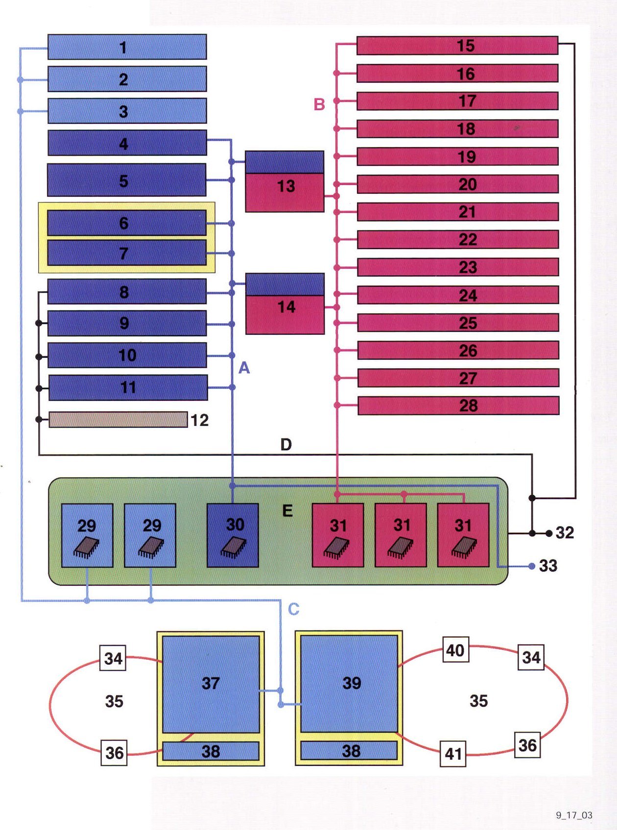 Compared to that of the sports cars, the data bus system is more extensive and consists of the following subsystems: