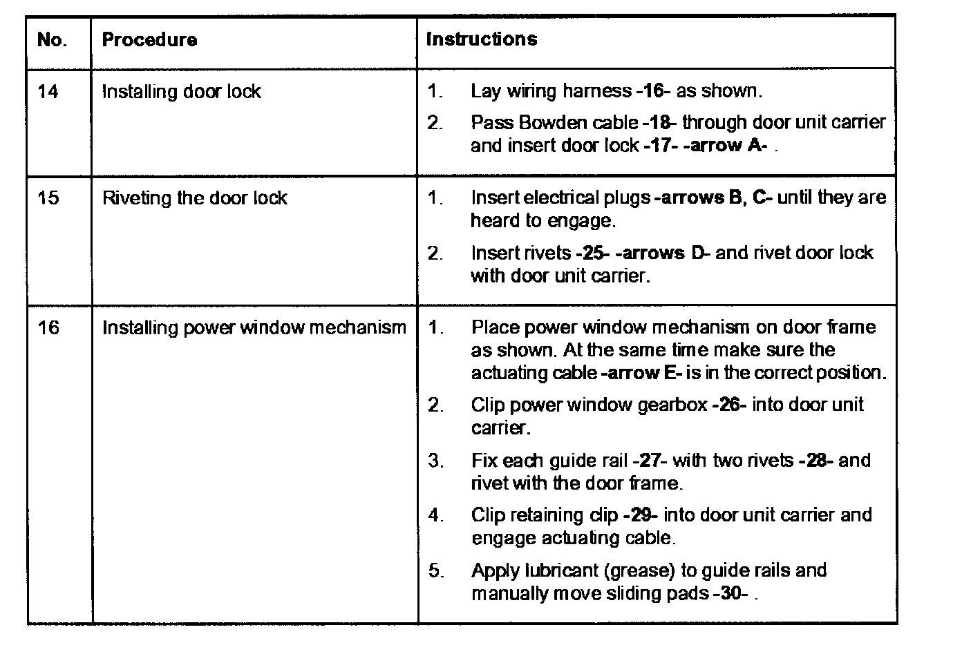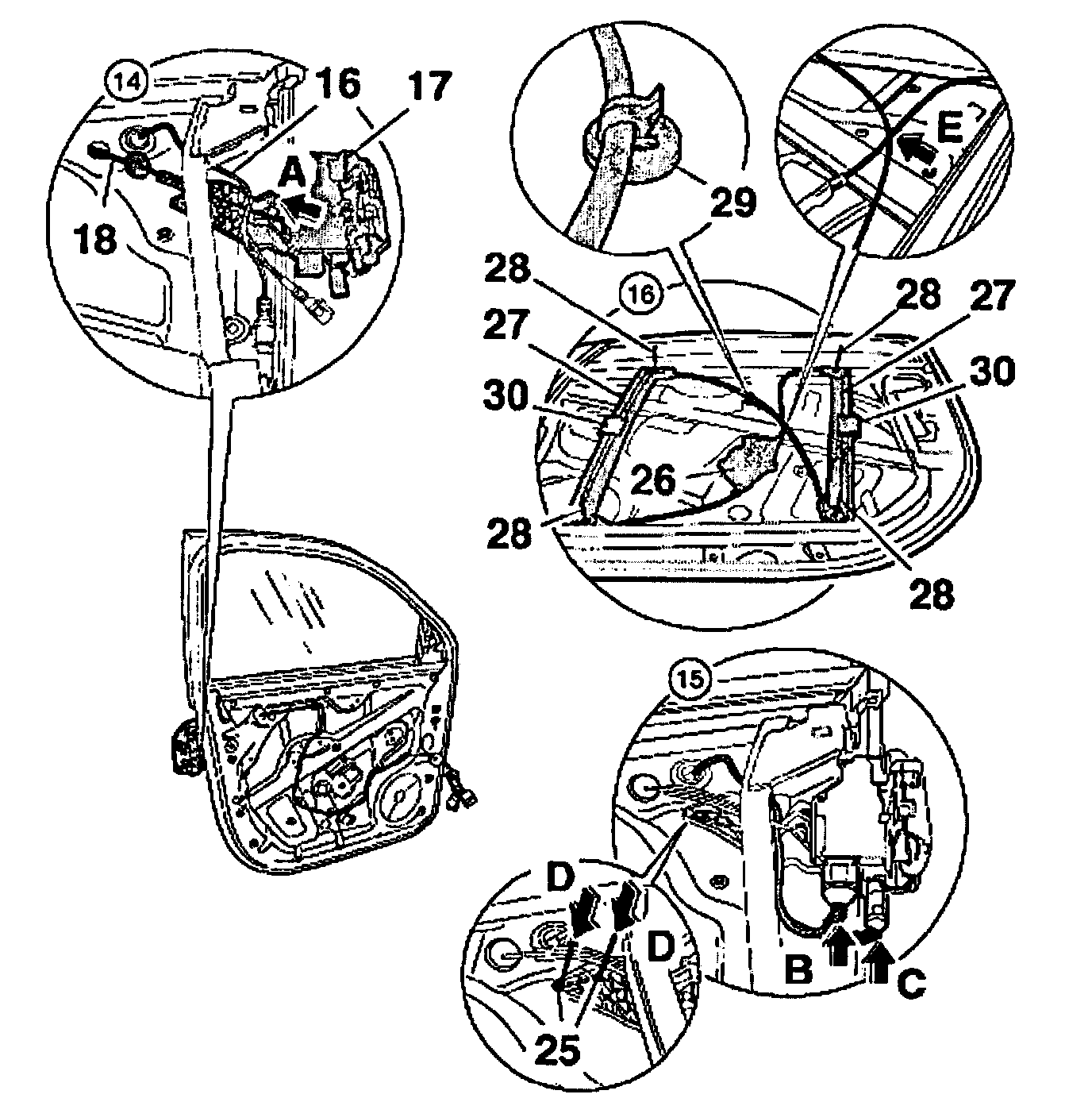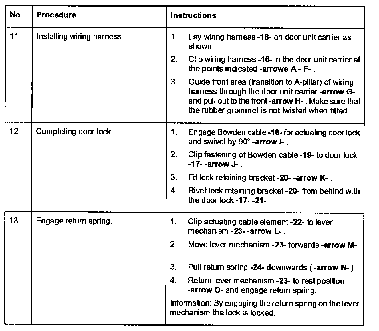- To a void in correct assembly of the actuating cable element, the lever mechanism must not be actuated from the outside during the assembly process. Not until the actuating cable element has been engaged on the door handle, can the lock be unlocked by the actuating cable element.