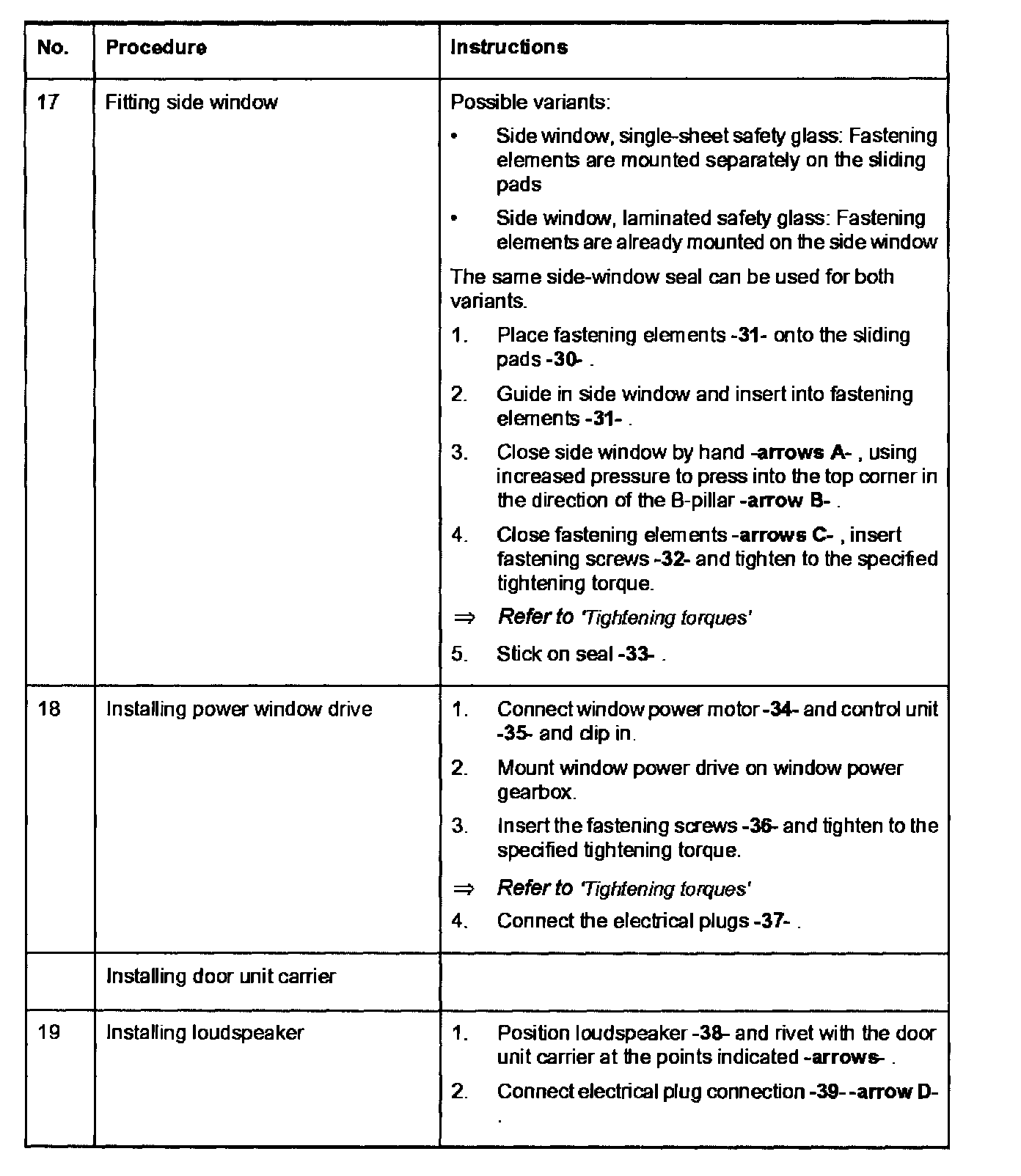 Tightening Torques