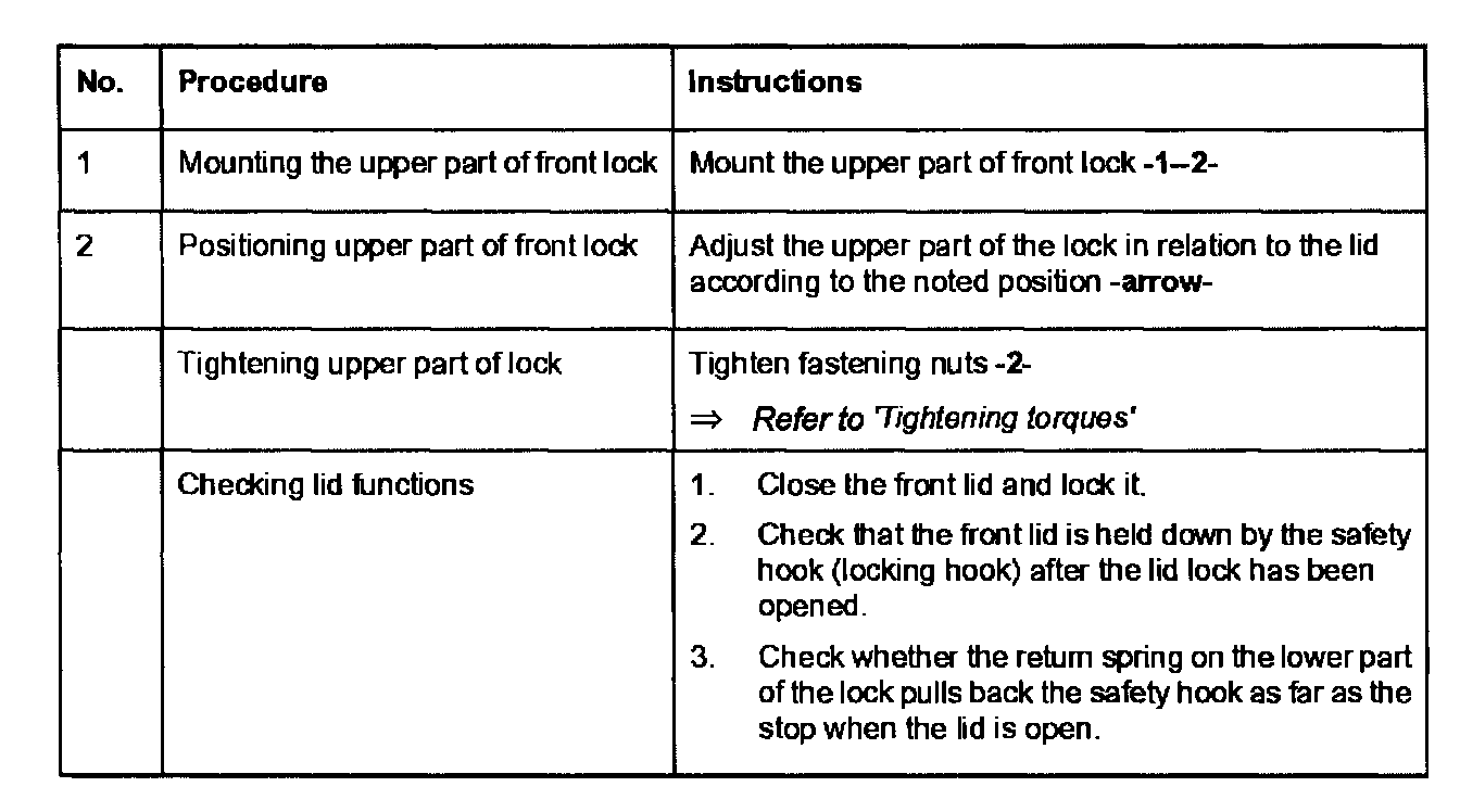 Removing and Installing Upper Part of Front Lock