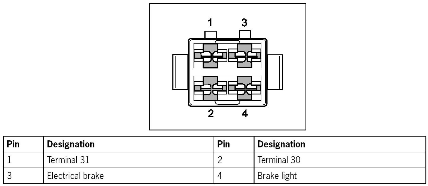 Plug on instrument panel wiring harness for trailer electrical brakes control unit (retrofit, only NAR, North America)