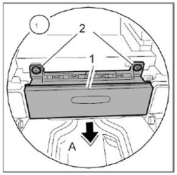 3.3. Pull the front ashtray -1- to the rear -Arrow A-, until the plug becomes accessible.