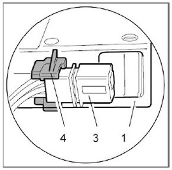 4.1. Release -3- and pull off -Arrow B- plug.