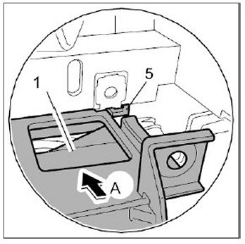 3.1. Insert front ashtray -1- into the guides -5- and push it in completely -arrow A-.