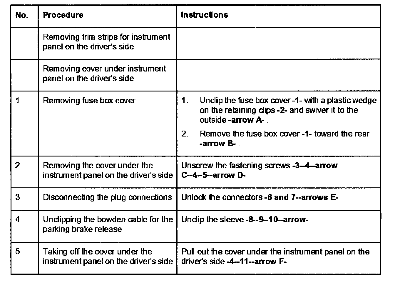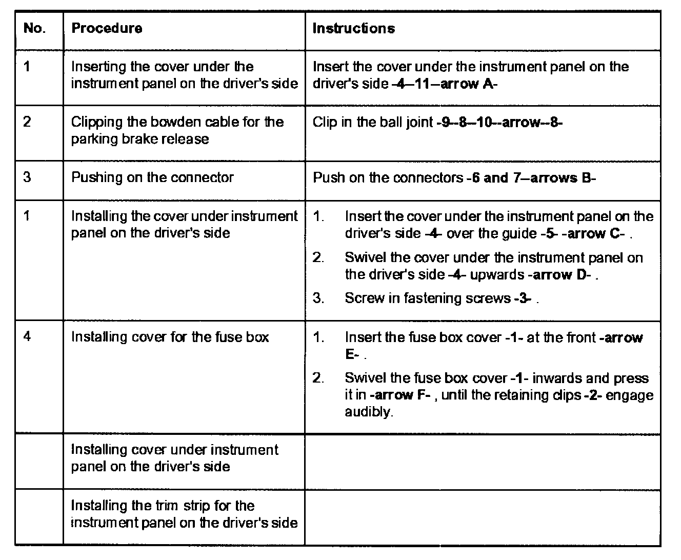Removing and installing the cover under the instrument panel on the driver's side