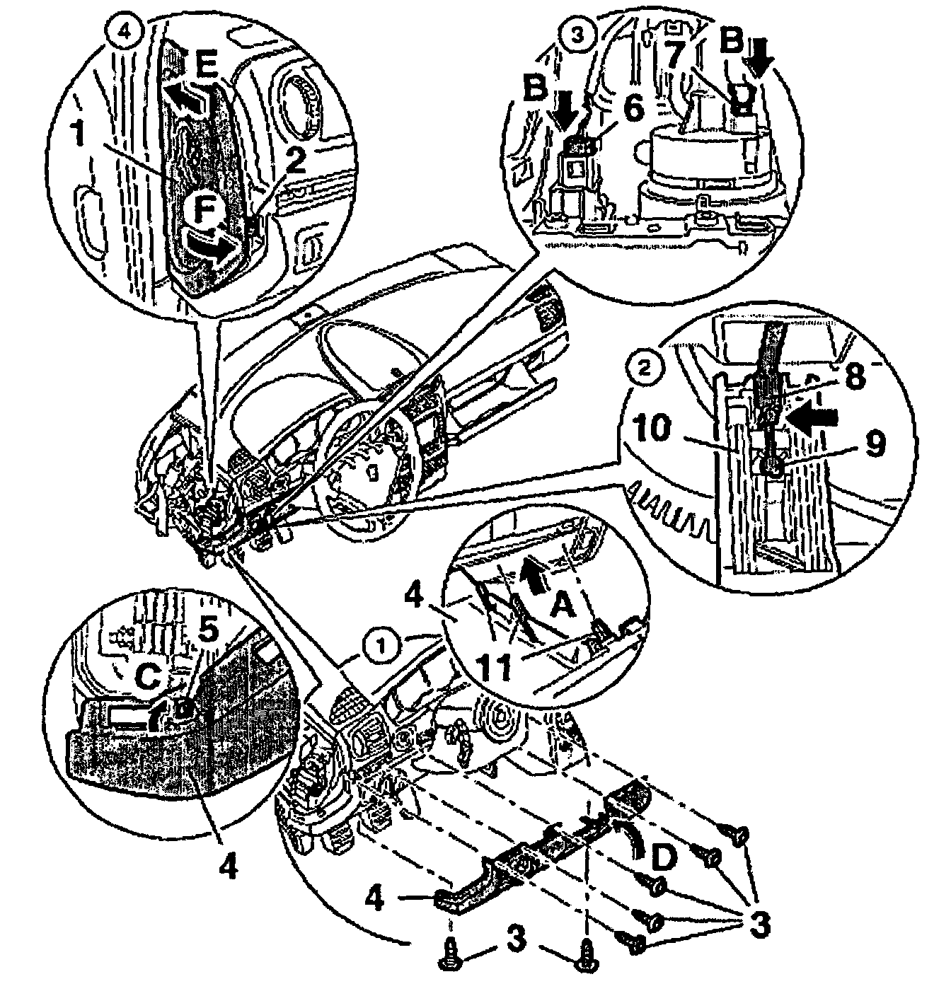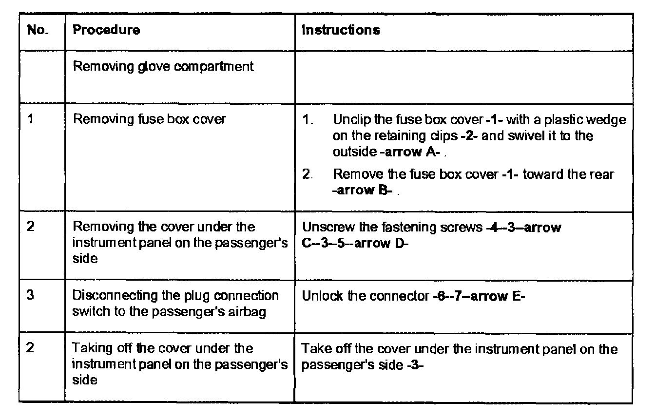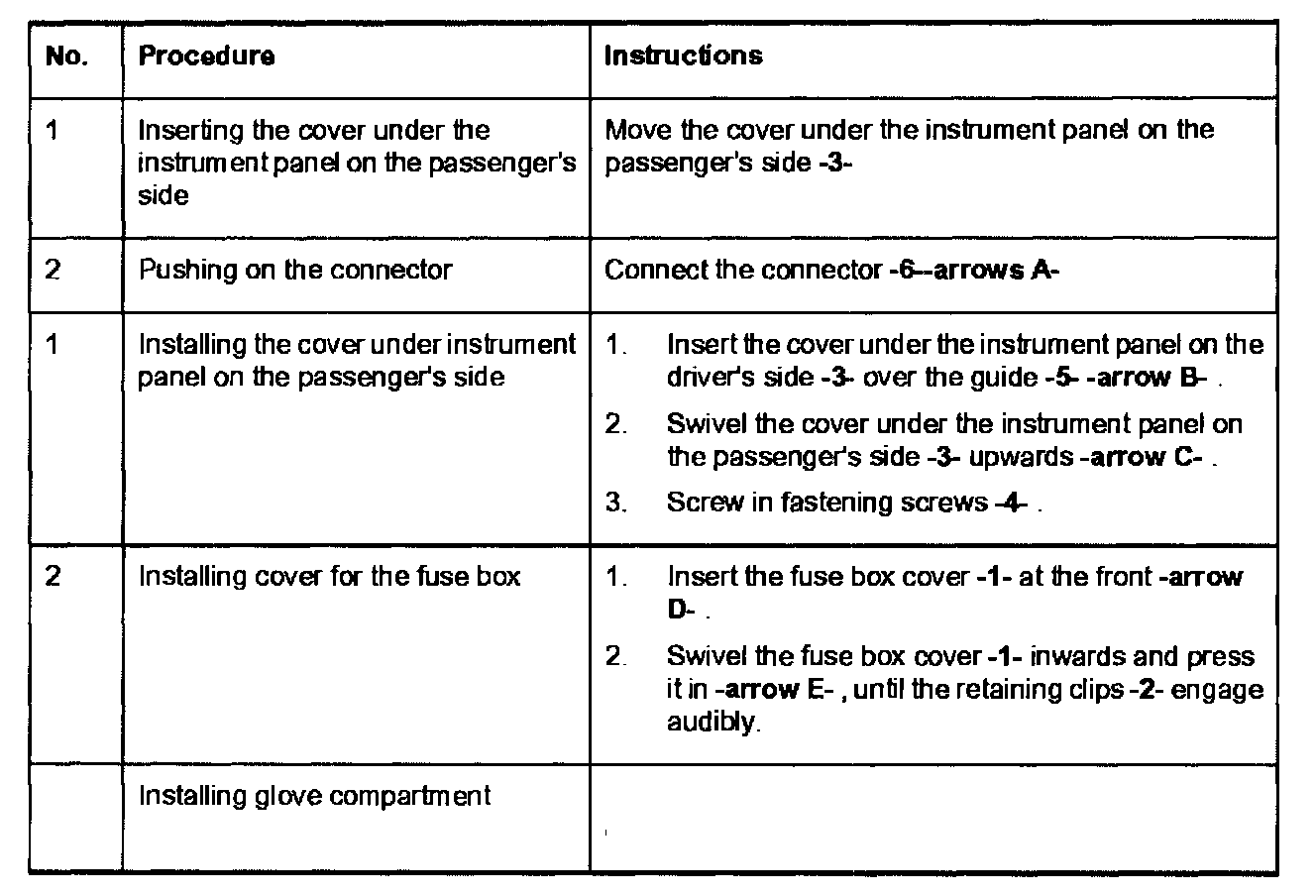 Removing and installing the cover under the instrument panel on the passenger's side