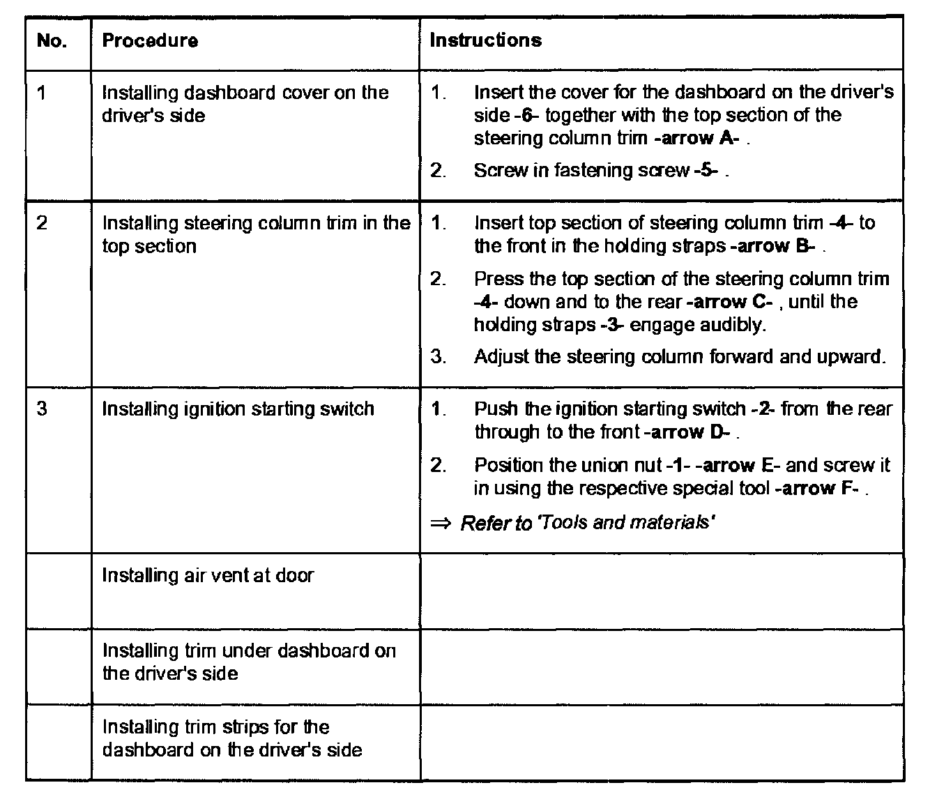 Removing and installing dashboard cover on the driver's side