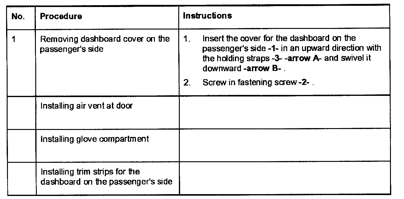 Removing and installing dashboard cover on the passenger's side
