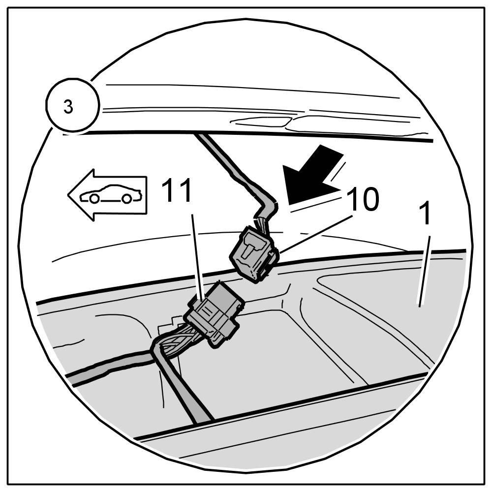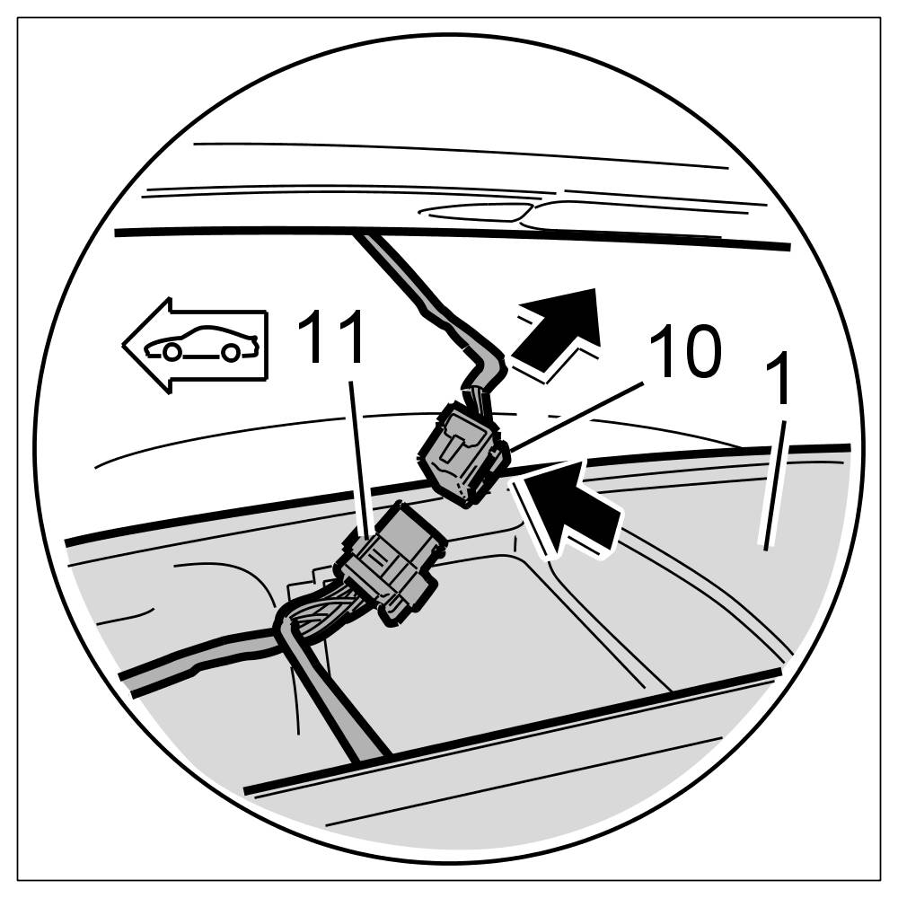 4. Connect plug connection for roof wire harness -10, 11-.