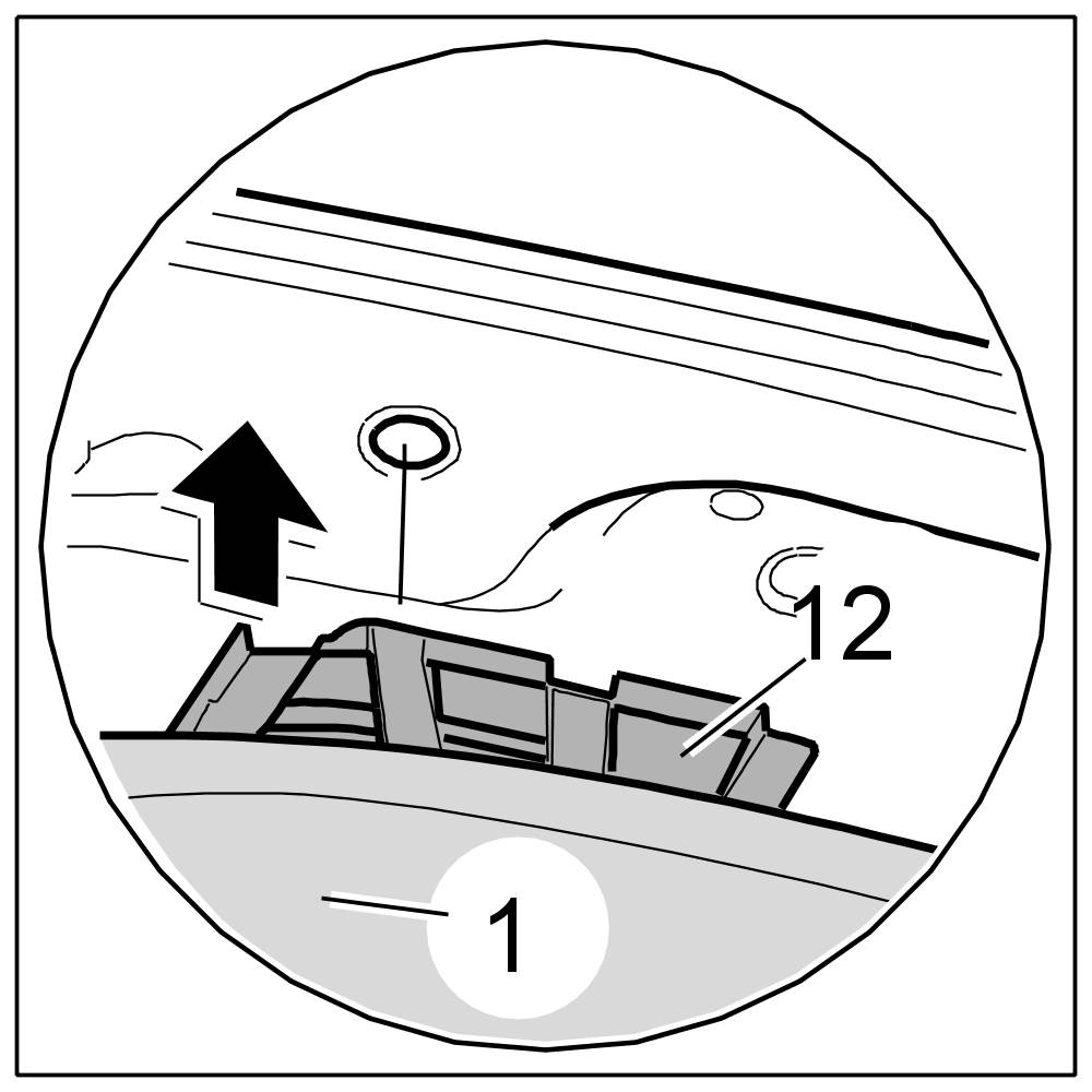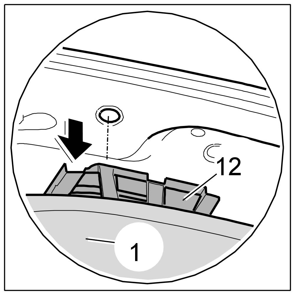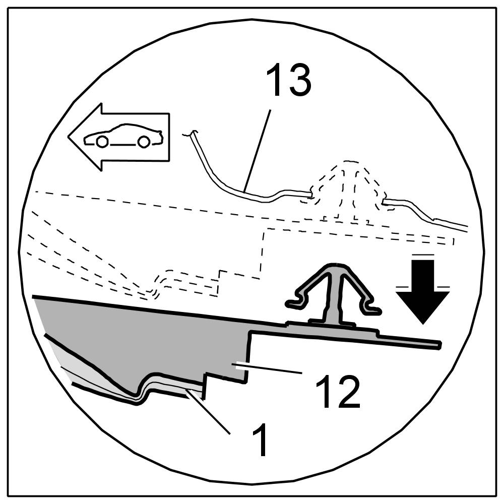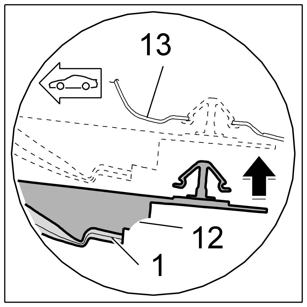 3. Clip fastening part for roof liner -12- into the bodyshell -13- at the back.