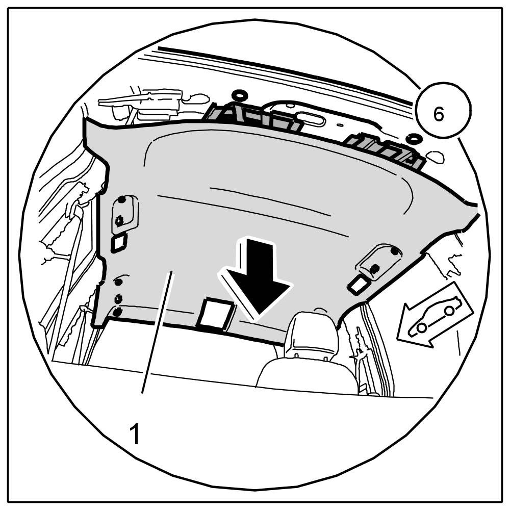 4.2. Remove headliner -1- and guide out of vehicle through tailgate opening.