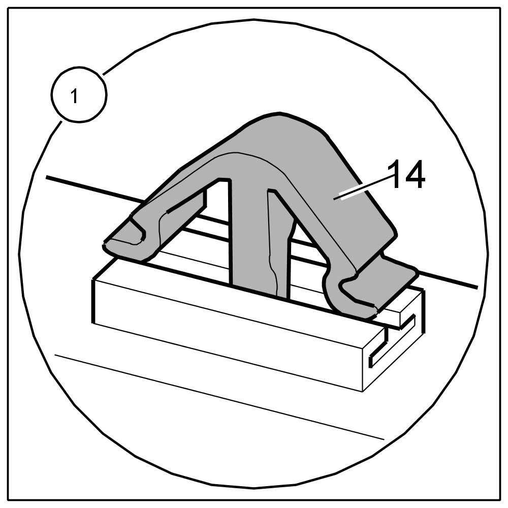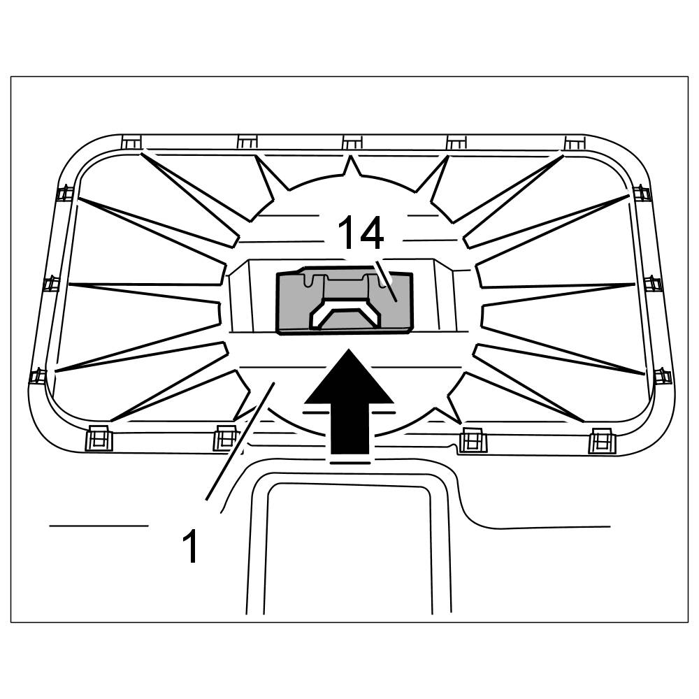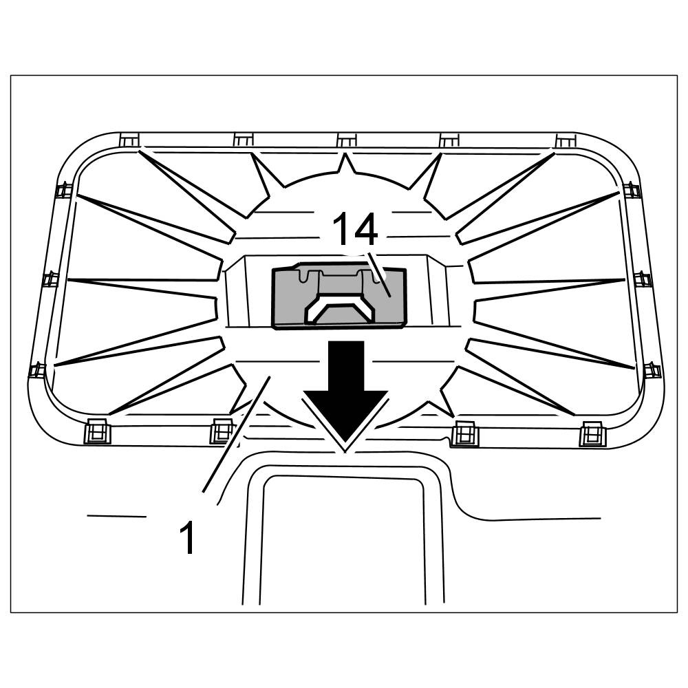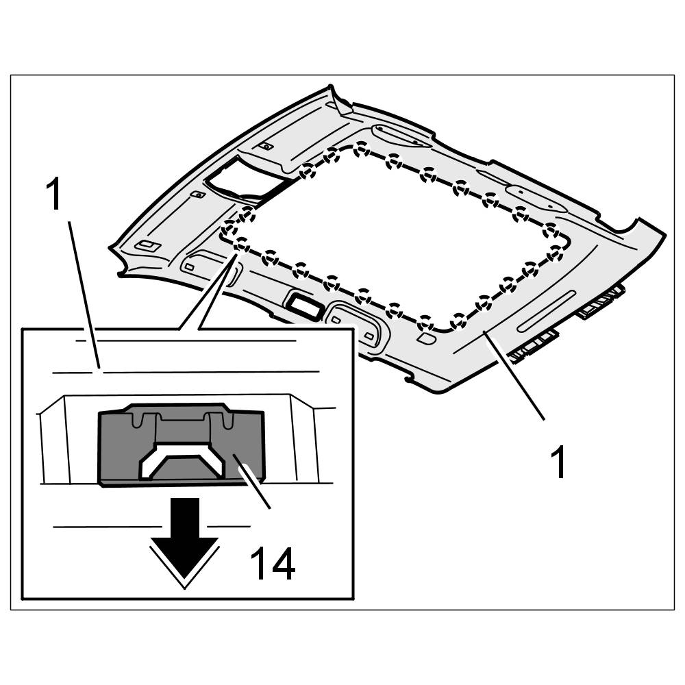 2. Clip in headliner -1- using fastening clips -14- close to sunroof cut-out.
