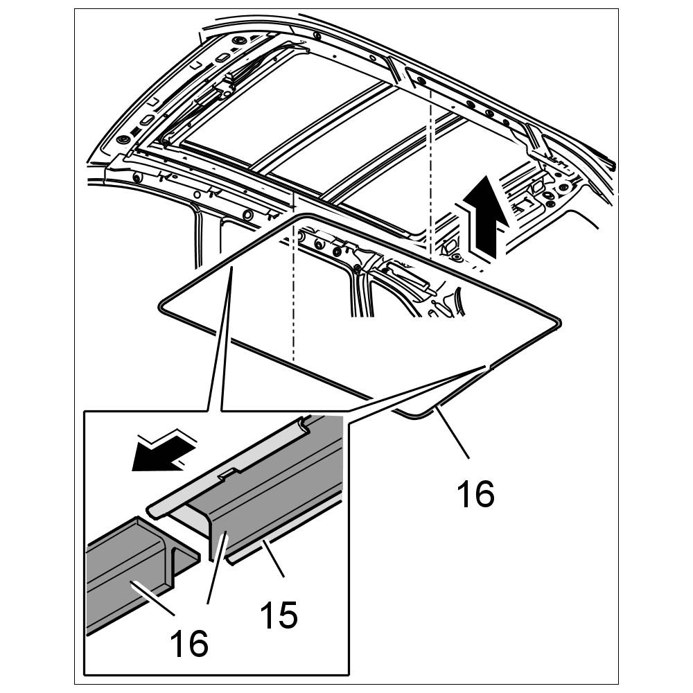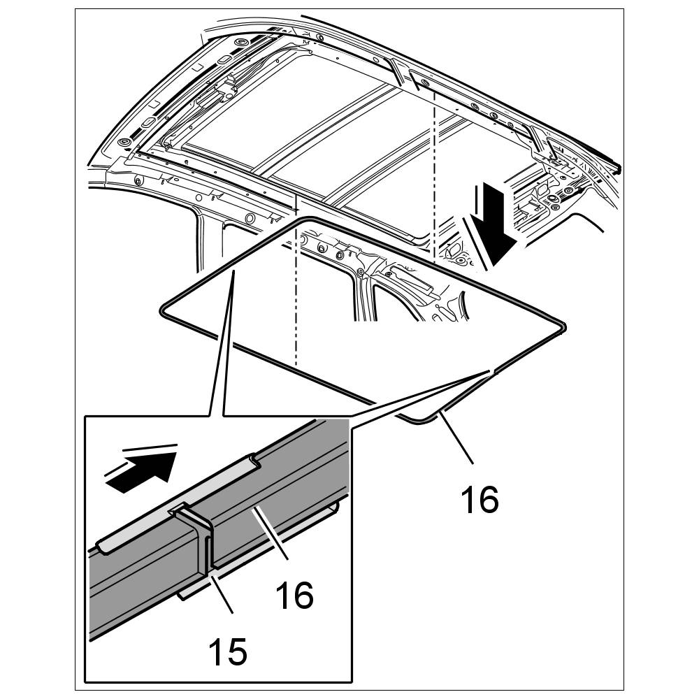 - Additional assembly operations must be performed on vehicles with sunroof or roof assembly. -> 708419 Removing and installing roof trim panel - "Removing" section
