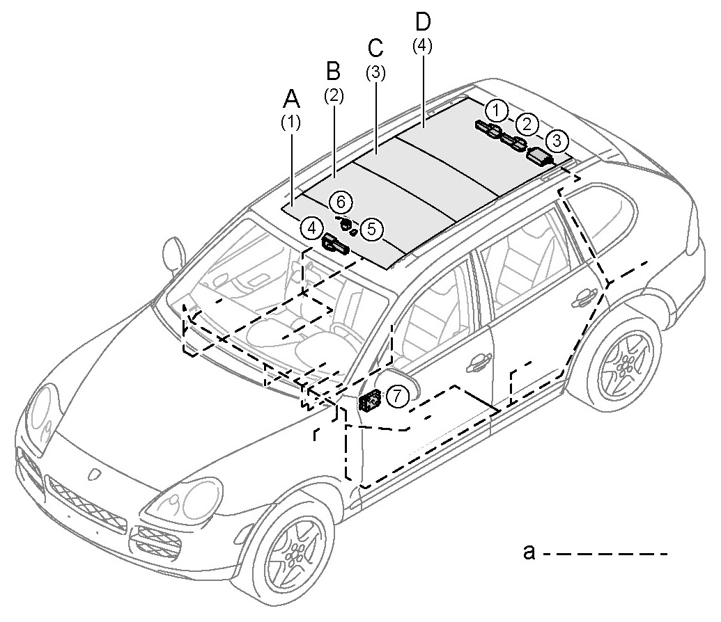 NOTE: The individual segments of the Panorama roof system are also referred to as cover in some cases. Enumeration is always done from front to back, alphabetically or numerically.