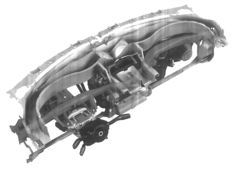 The lower section of the instrument panel consists of the support frame to which areattachedd assemblies such as air vents, steering column lever, fans, etc.