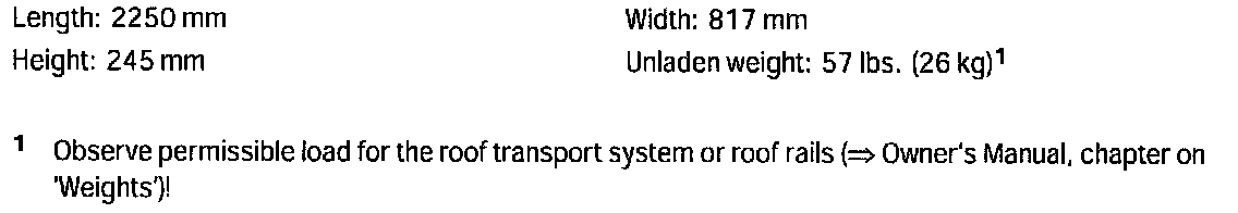 => Observe the maximum permissible roof load of the vehicle in accordance with the Owner's Manual!