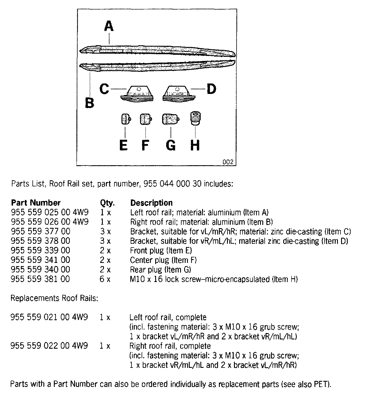 955 044 000 30 Roof rail, complete set