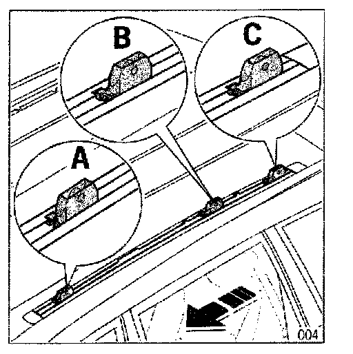 3.4 Insert plugs in the roof rail according to their length in the following positions: