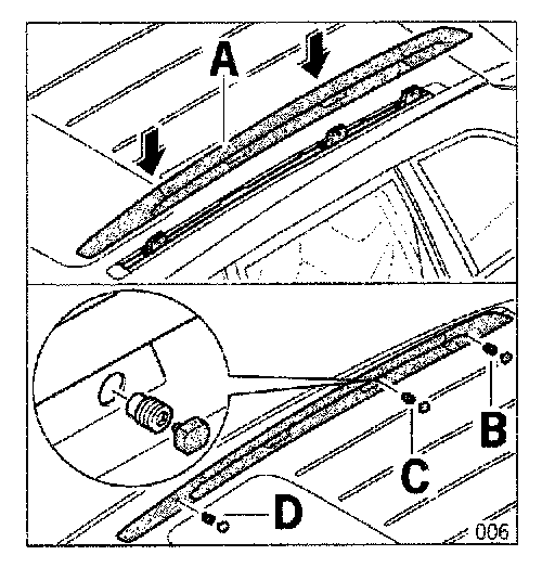 3.3 Press roof rail firmly downwards and tighten the lock screws in the order B/C/D.