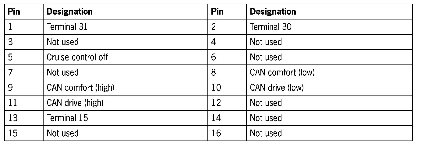 Connector assignmentWiring harness plug A, 16-pin (steering column switch with electronic unit)