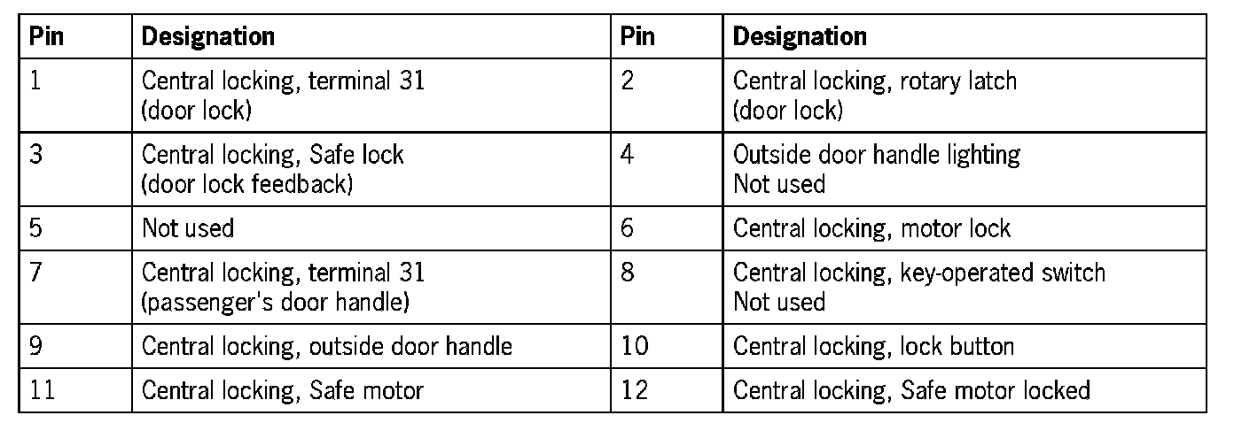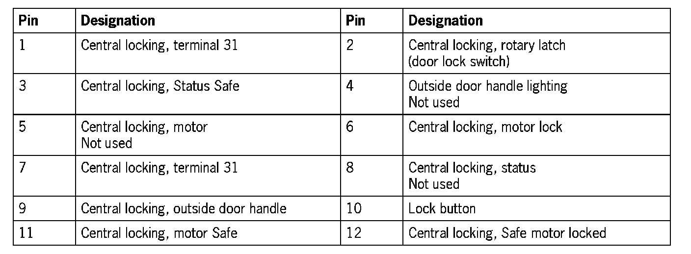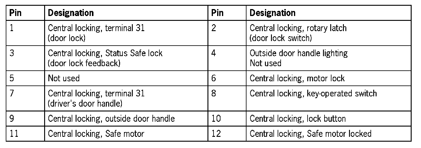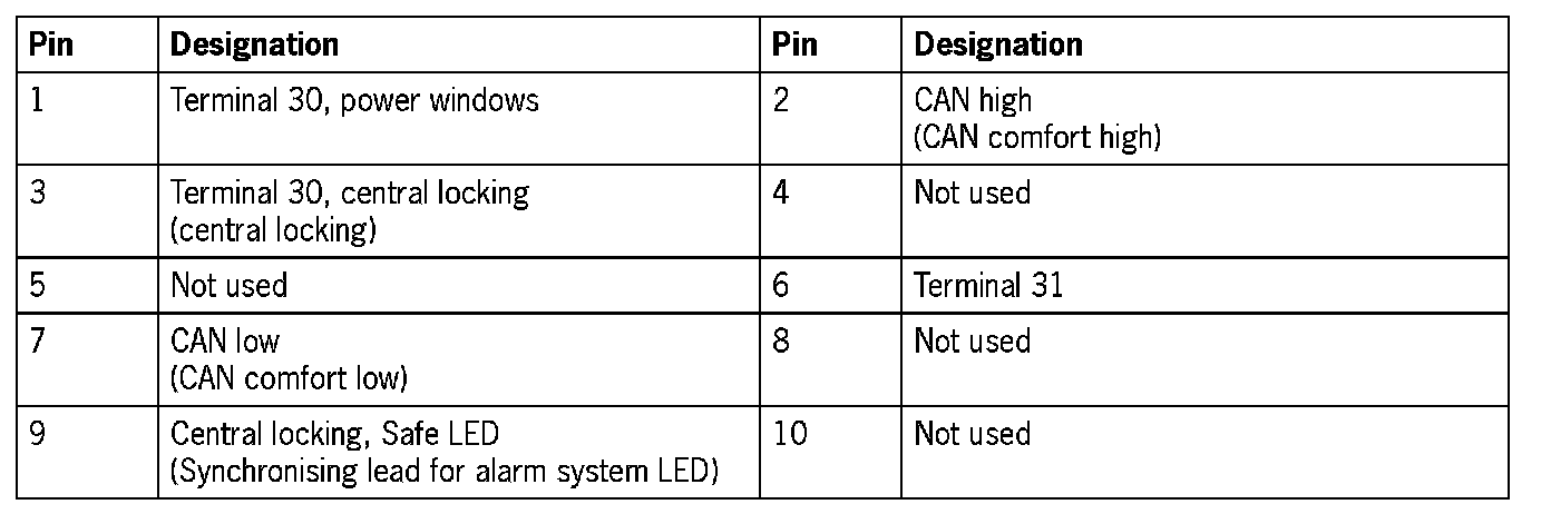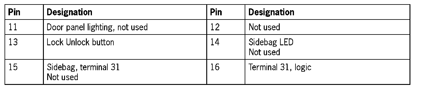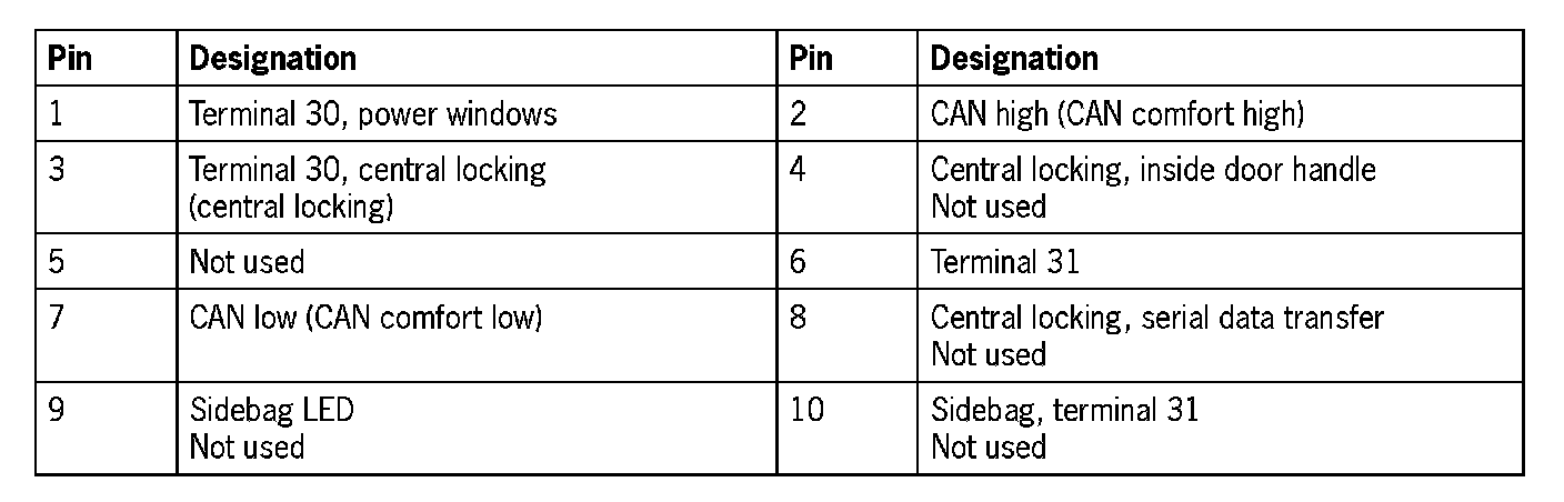 Connector assignment, passenger's door control module
