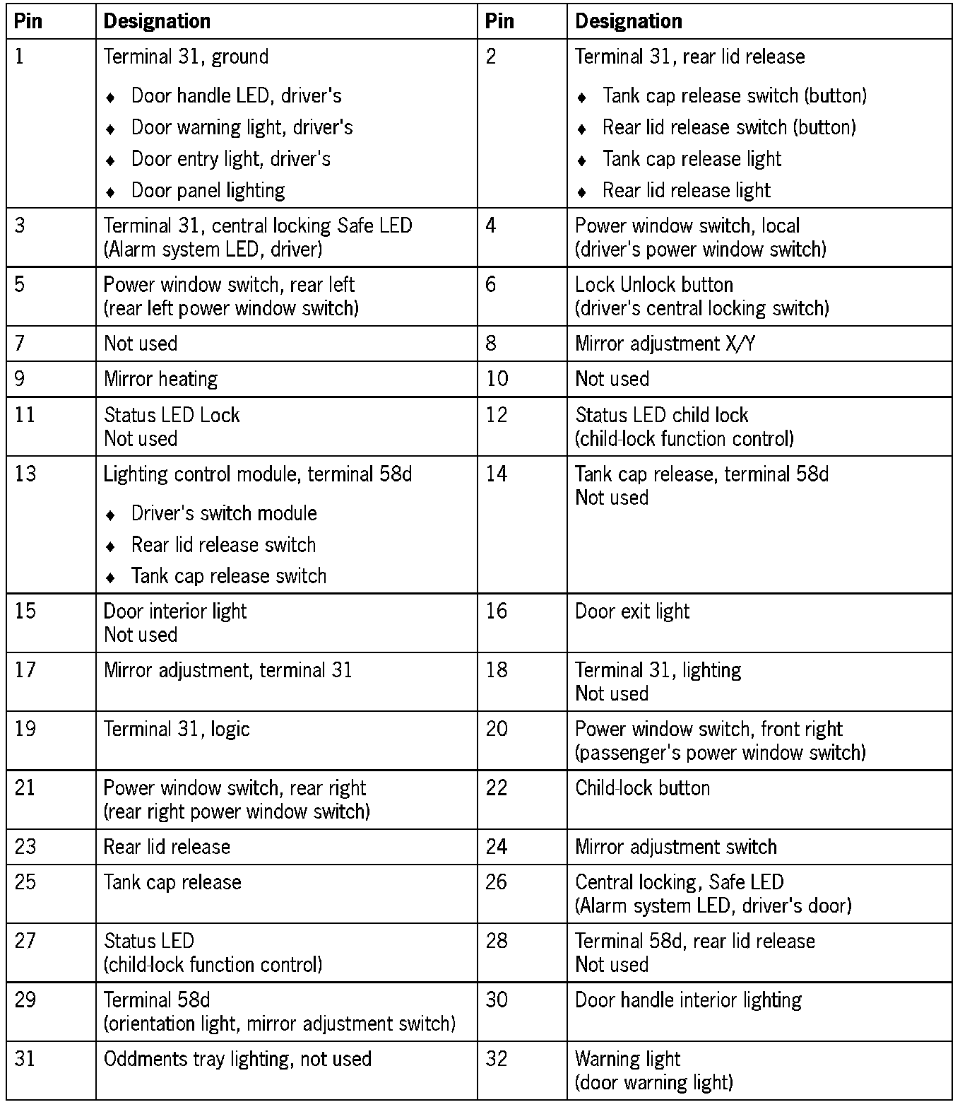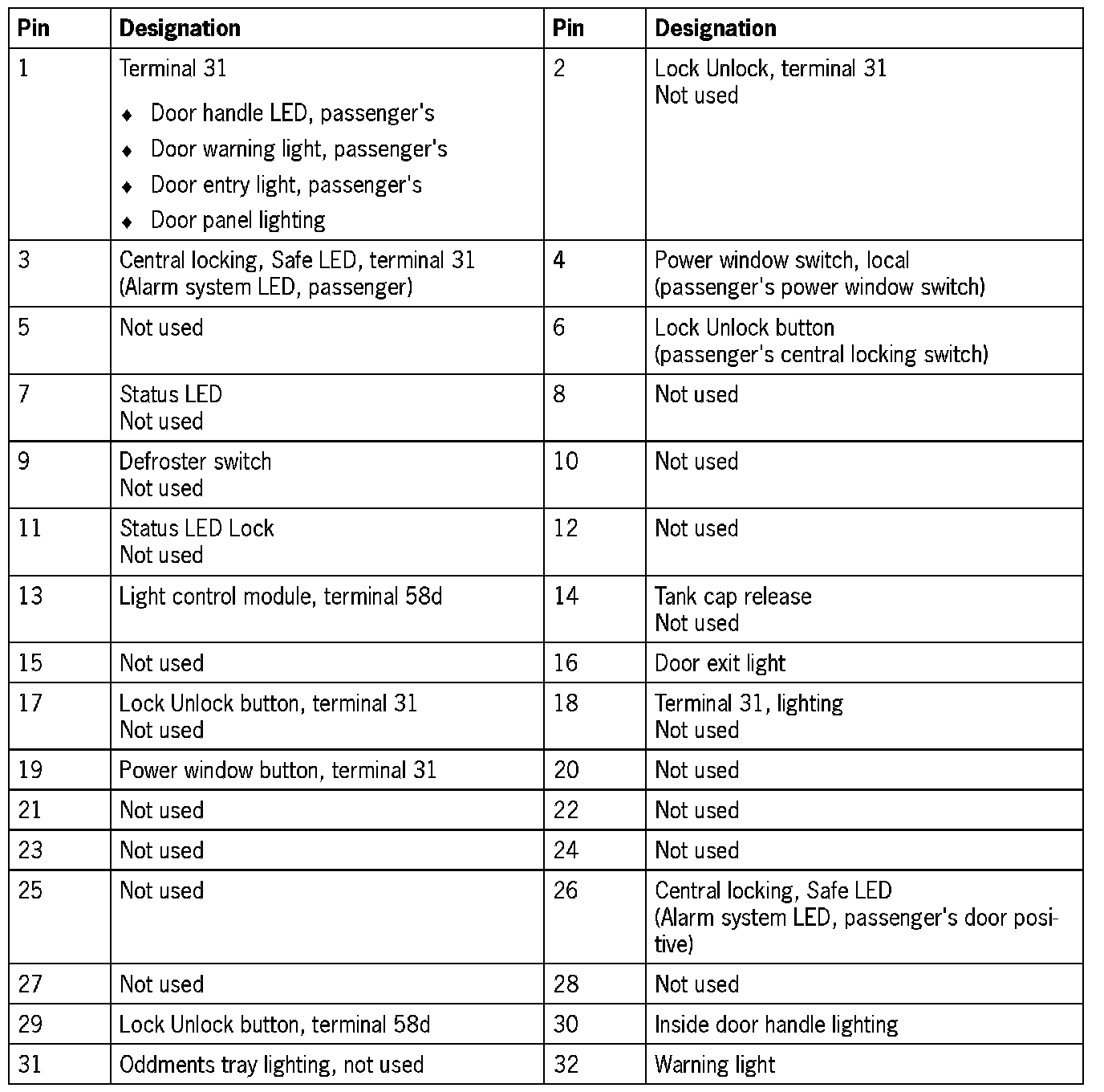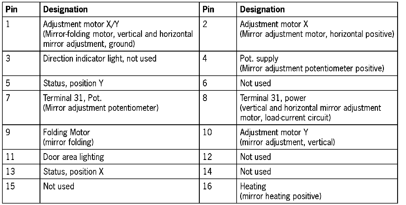 Connector assignment, passenger's door control module