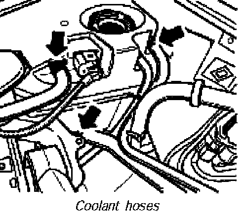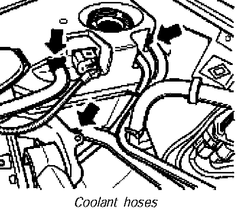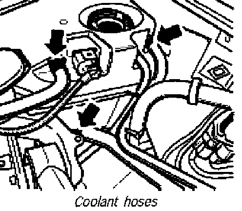 4. Reinstall body bracket for the torque support. Clip on electric cable for coolant reservoir (2 x).