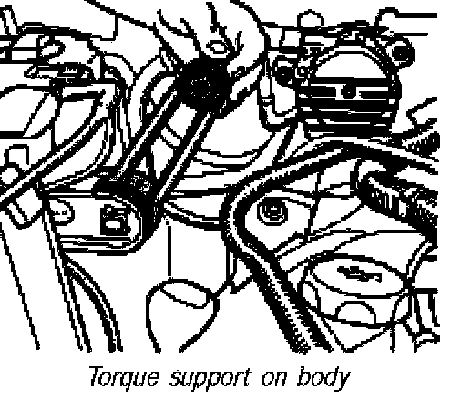 7. Reinstall torque support. Install the fastening screw (M10 x 85) with a new fastening nut on the bracket. Tightening torque 44 ft. lbs..