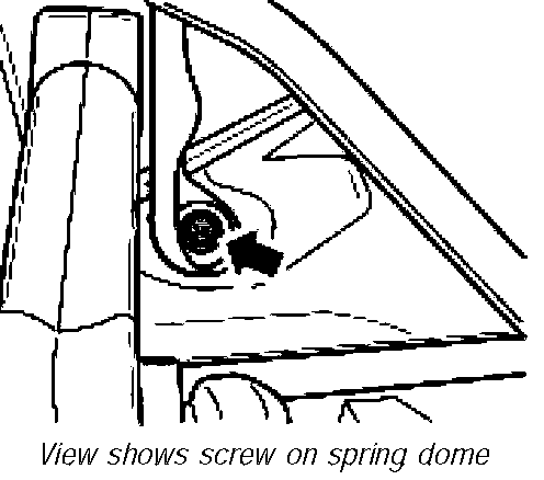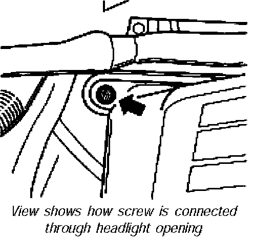 5. Undo torque support bracket fastening screw from the body. One fastening screw is loosened through the headlight opening. The second screw is accessible from the top.