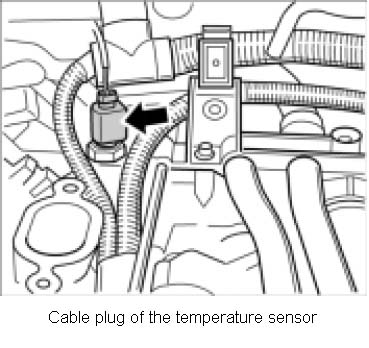 2. Unscrew the coolant temperature sensor using a ring wrench (a/f 22) -see picture-. Absorb emerging coolant.