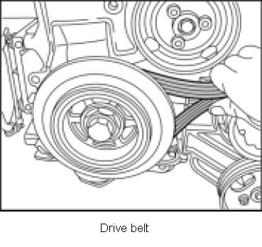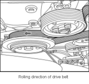 3. Mark the rolling direction of the drive belt with chalk and remove drive belt around the crankshaft belt pulley.
