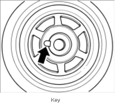 ^ A key is inserted into the crankshaft. When fitting the belt pulley, ensure that the key slots into the groove in the belt pulley.