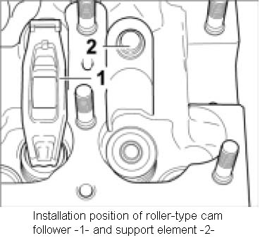 1. Take the roller-type cam followers with the support elements out of the cylinder head. The roller-type cam followers must be completely removed carefully.