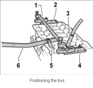 2. Attach the lever tool 2036-1, 2 and 4- to the cylinder head and adjust it. The installation position of the tool must be adjusted for each valve.