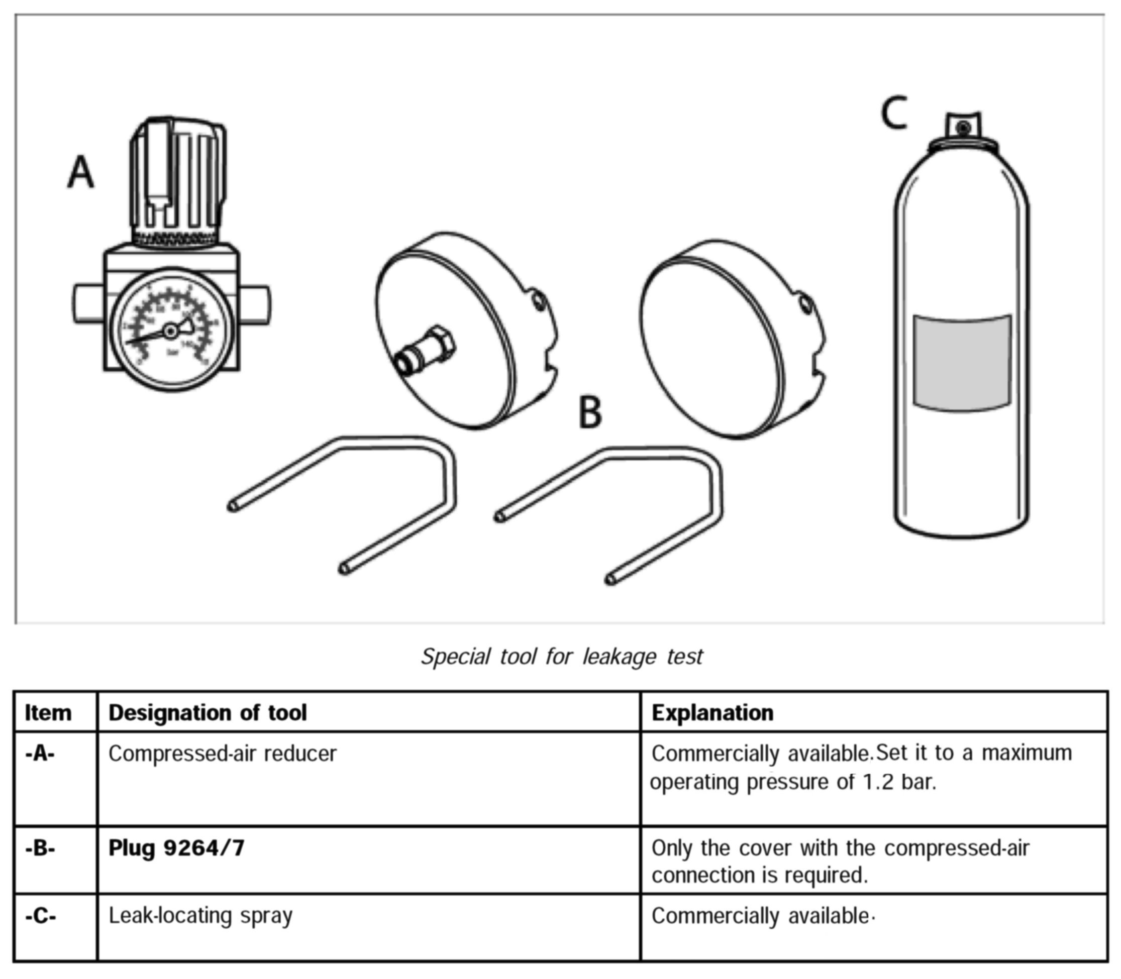 3. Push a compressed-air hose onto the connection on the plug 9264/7 and connect the other end to the compressed-air reducer.