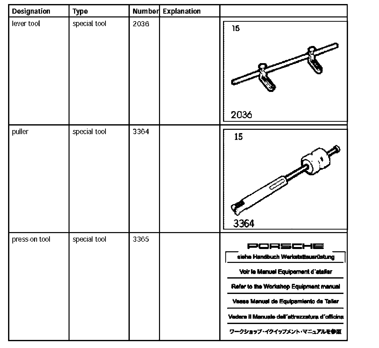 2. Attach the lever tool 2036 -1, 2 and 4- to the cylinder head and adjust it. The installation position of the tool must be adjusted for each valve.
