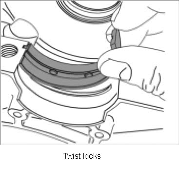 2. Insert bearing shells into the bearings and bearing covers after oiling them. Insert twist locks or retaining lugs for the bearing shells into the recesses. Make sure the twist locks are positioned correctly.