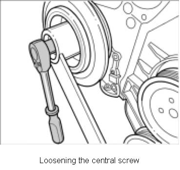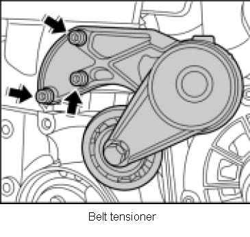2. Remove belt tensioner. To do this, remove three M8 x 30 fastening screws.