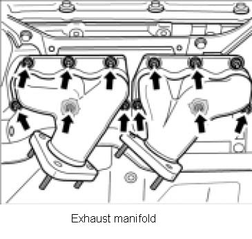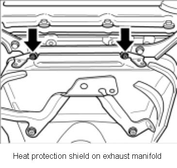 14. Unscrew heat protection shield on exhaust manifold (two M6 hexagon socket head bolts).