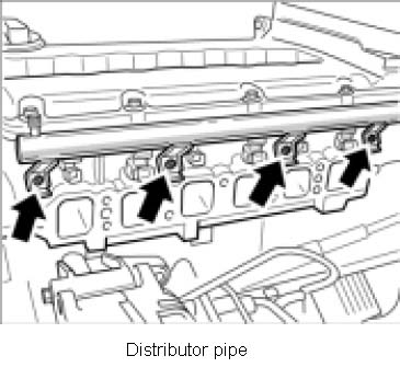 34. Install fuel distribution pipe and fuel injectors.