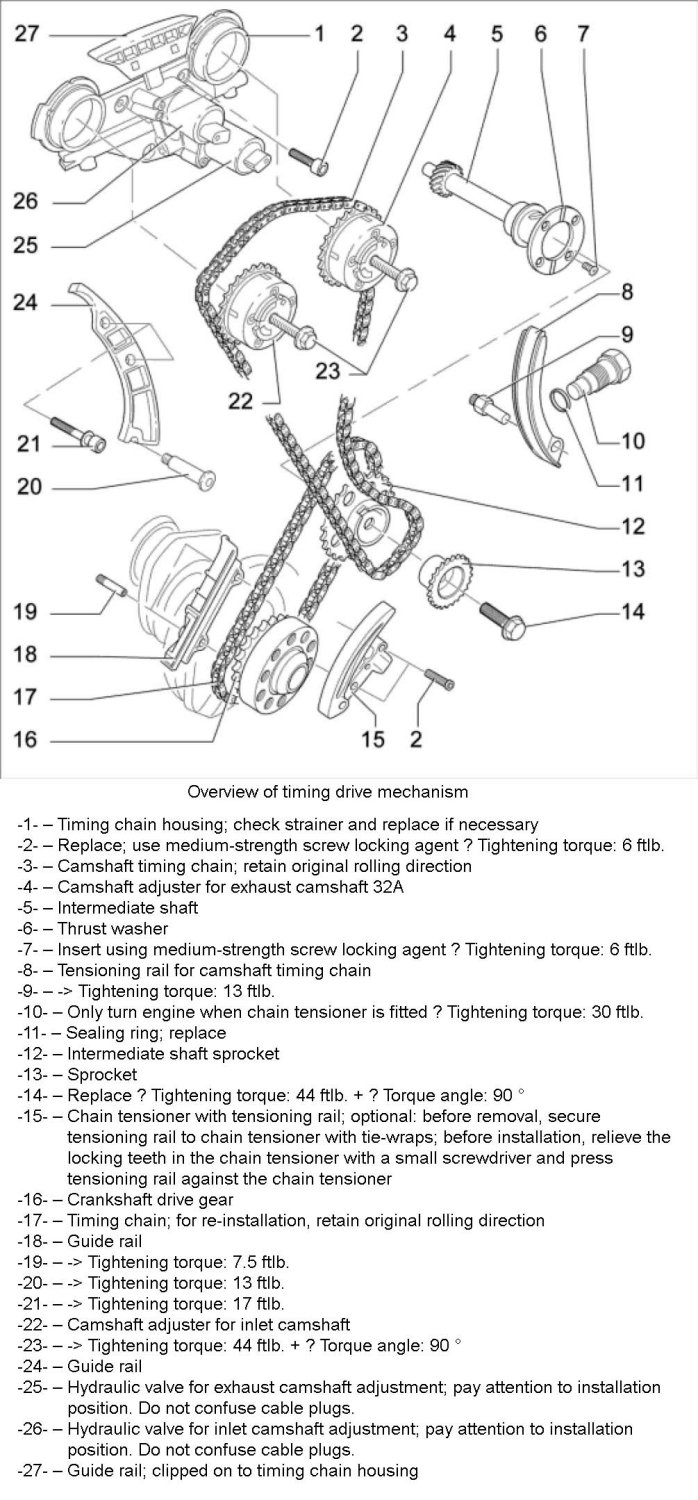 ^ Always turn the engine on the crankshaft and never on the camshaft as the timing chain may jump over.