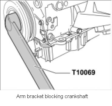 3. Block crankshaft using arm bracket T10069 with the help of an assistant.
