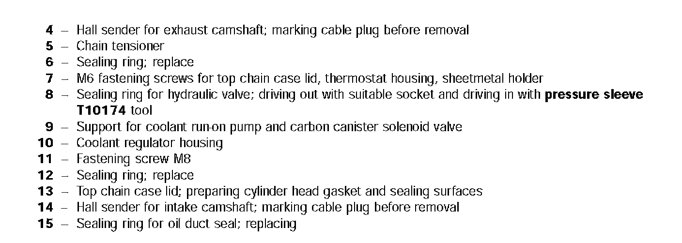 3. Turn the top chain case lid over, fit the new sealing ring by hand and carefully drive it in flush using pressure sleeve T10174 and a plastic hammer --> Pressure sleeve.