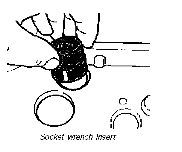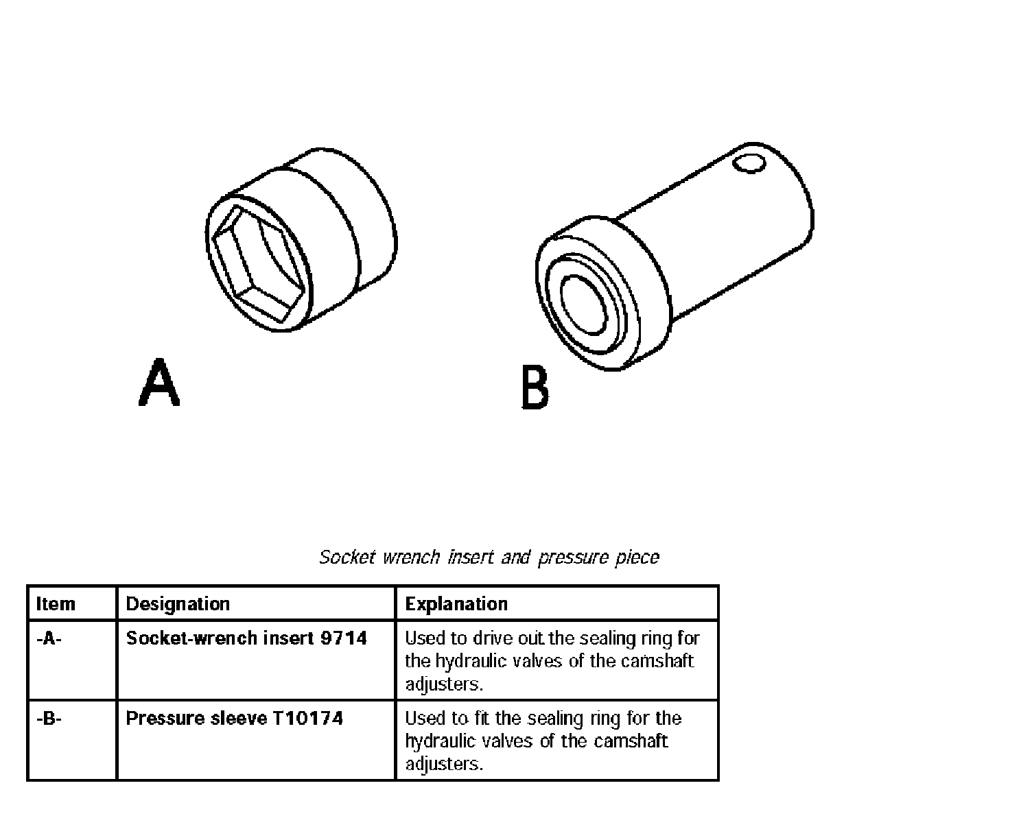 2. Place top chain case lid on a level support. Make sure to leave sufficient space below the chain case lid for driving out the sealing ring. Drive out sealing ring using socket wrench insert 9714 and a plastic hammer --> Socket wrench insert.